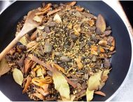 Пренасяме се в Африка с микса подправки наречен "рас ел ханут" или в превод "специалитетът на магазина"като има доста разнообразни варианти и понякога може да включва над 15 подправки. Нашият е доста по-семпъл и в него има само: