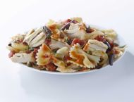 Смесете соса, рибата тон и магданоза със сварената паста.