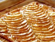 Когато питата е готова, смесете кайсиевия конфитюр с Калвадоса и поръсете ябълките със сместа.