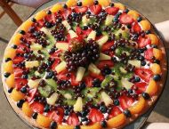 За глазурата: Смесете захарта с царевичното брашно. Добавете ананасовия и лимоновия сок. Сложете на котлона да заври и бъркайте, докато се сгъсти. Оставете да се охлади. С четка намажете плодовете отгоре.