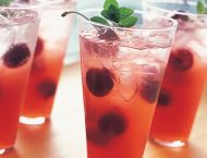 Сипете в охладени чаши и добавете лед. Украсете с резени лайм и свежи череши.
