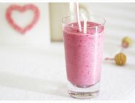 Сипете захарния сироп в блендер, добавете киселото мляко, малините, ябълковия сок, ванилията и леда. Бъркайте до еднородна смес.