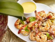 Във всяка чиния скариди сложете и по една малка купичка със сос.