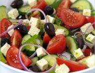 Изсипете винегрета върху зеленчуците. Добавете сиренето и маслините и внимателно разбъркайте. Оставете настрана за 30 минути, за да се овкуси добре и сервирайте на стайна температура.