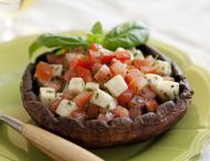 В чинии за салата разпределете печурките. Отгоре сложете от доматената салата и малко зехтин.