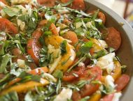 Смесете пастата с босилек с дресинга и овкусете салатата.
