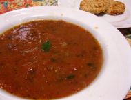 В тенджера задушете чесъна в 2 лъжици зехтин, маслото и червения пипер до златисто. Добавете консервата домати, босилека, мащерката и пилешкия бульон. Добавете и изпечените домати. Оставете да къкри 40 минути. Пасирайте (може и по-грубо).