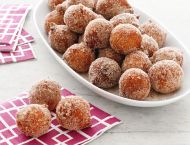 Смесете сухата с банановата смес. Направете топчета и пържете до златисто. Изваждайте върху кухненска хартия. Овалвайте топчетата в канелена захар.