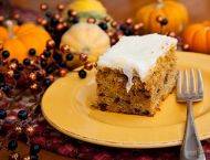 За топинга: С миксер разбийте сиренето и маслото. Добавяйте постепенно захарта и ванилията. Разбийте добре. Изсипете върху тиквените квадратчета.