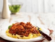 Намалете температурата до средна и добавете лука и чушката. Захлупете и задушете, докато зеленчуците започнат да омекват – около 5 минути. Добавете гъбите и махнете капака. Гответе, докато гъбите придобият кафяв загар. Добавете чесъна и бъркайте половин минута. Добавете виното и гответе, докато се редуцира наполовина. Добавете нарязаните домати от консерва, заедно със сока, ригана, червения пипер и малко сол. Оставете да къкри 10 минути.